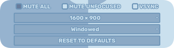 - Window Mode selector - Windowed, Fullscreen, Borderless Fullscreen